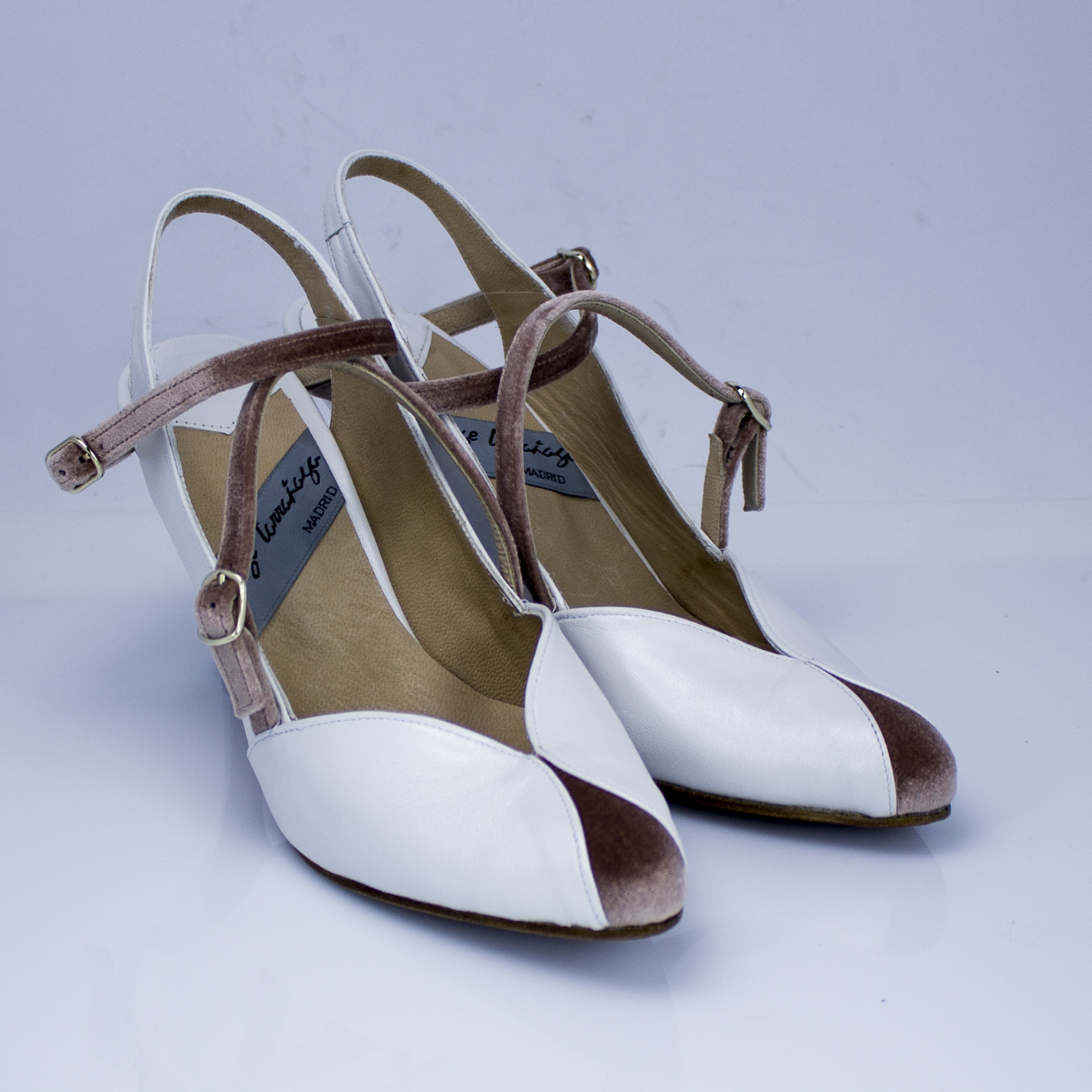 Zapatos de novia en piel metalizada y terciopelo make up en tiras y puntera.