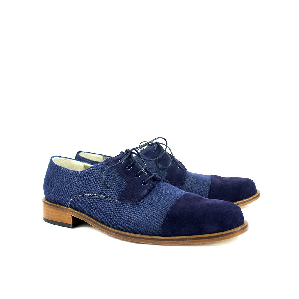 Zapatos Oxford Híbrido: Zapato Artesanal de Lina y Ante Azul Marino, Personalizable