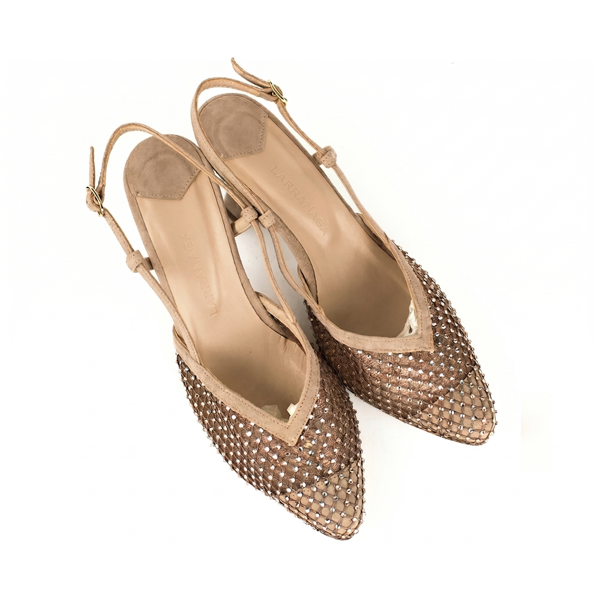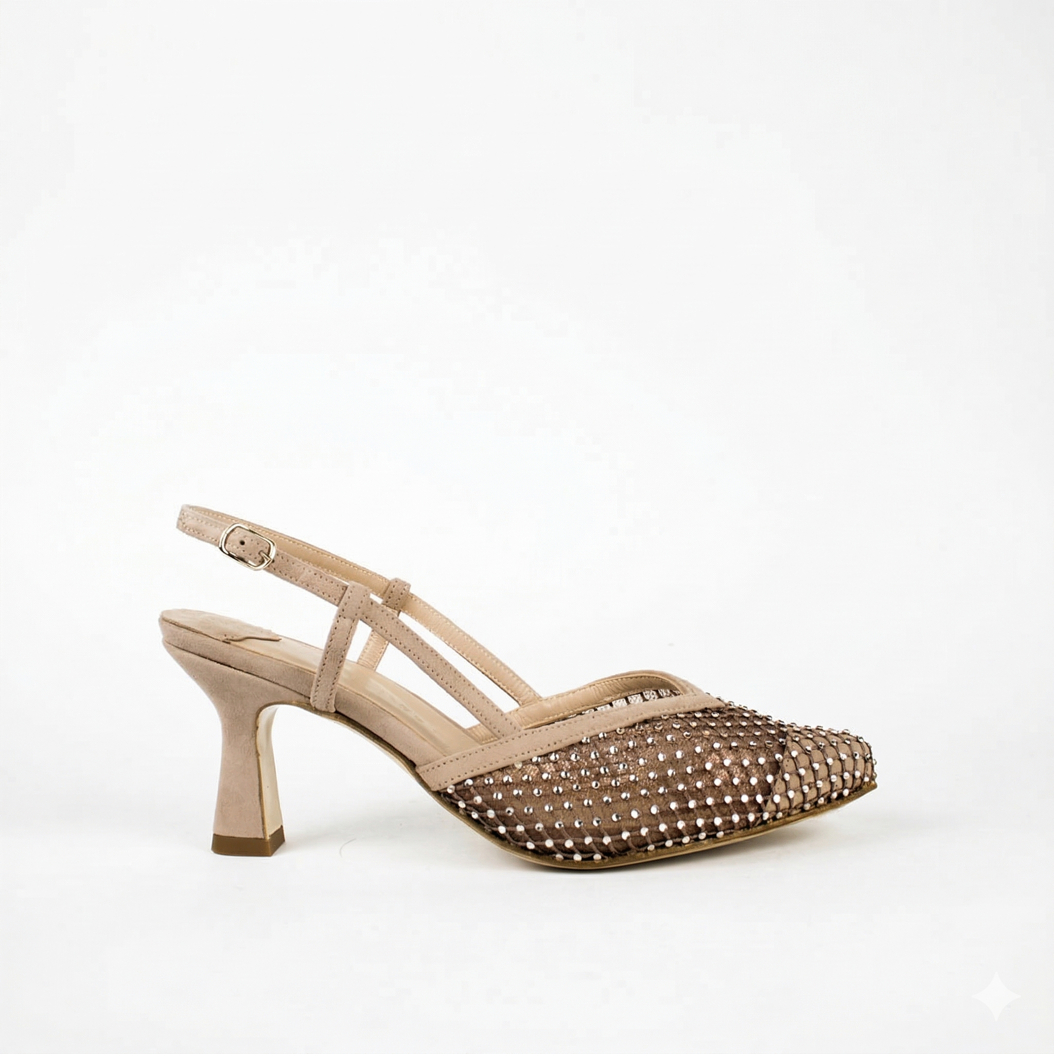 Zapatos Slingback en Beige con Rejilla y Cristales: Brillo y Distinción