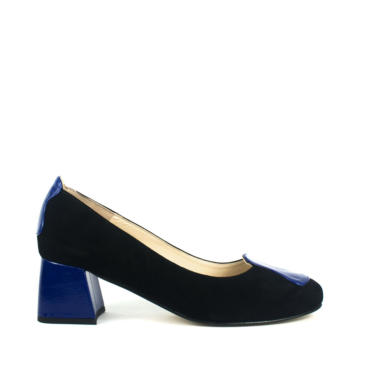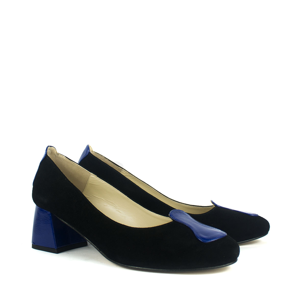 Diseñados para la mujer que no solo viste, sino que cuenta una historia. Nuestros zapatos de salón son una obra de artesanía, donde el arte y la moda se encuentran. Sobre una base de lujoso ante negro, emerge un adorno en charol azul eléctrico cuya forma fluida y orgánica es un homenaje directo a los famosos relojes de Salvador Dalí.